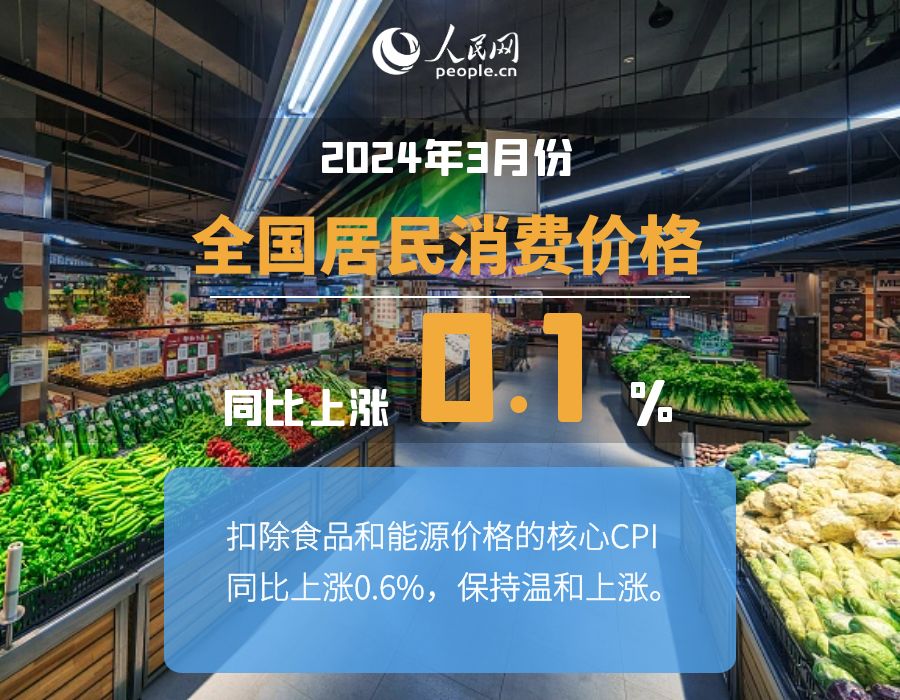国家统计局城市司首席统计师董莉娟分析,3月份,受节后消费需求季节性回落、市场供应总体充足等因素影响,全国CPI环比季节性下降,同比涨幅有所回落。扣除食品和能源价格的核心CPI同比上涨0.6%,保持温和上涨。