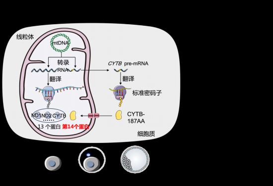 线粒体基因CYTB编码胞质翻译的CYTB-187AA调控早期发育。(受访对象供图)